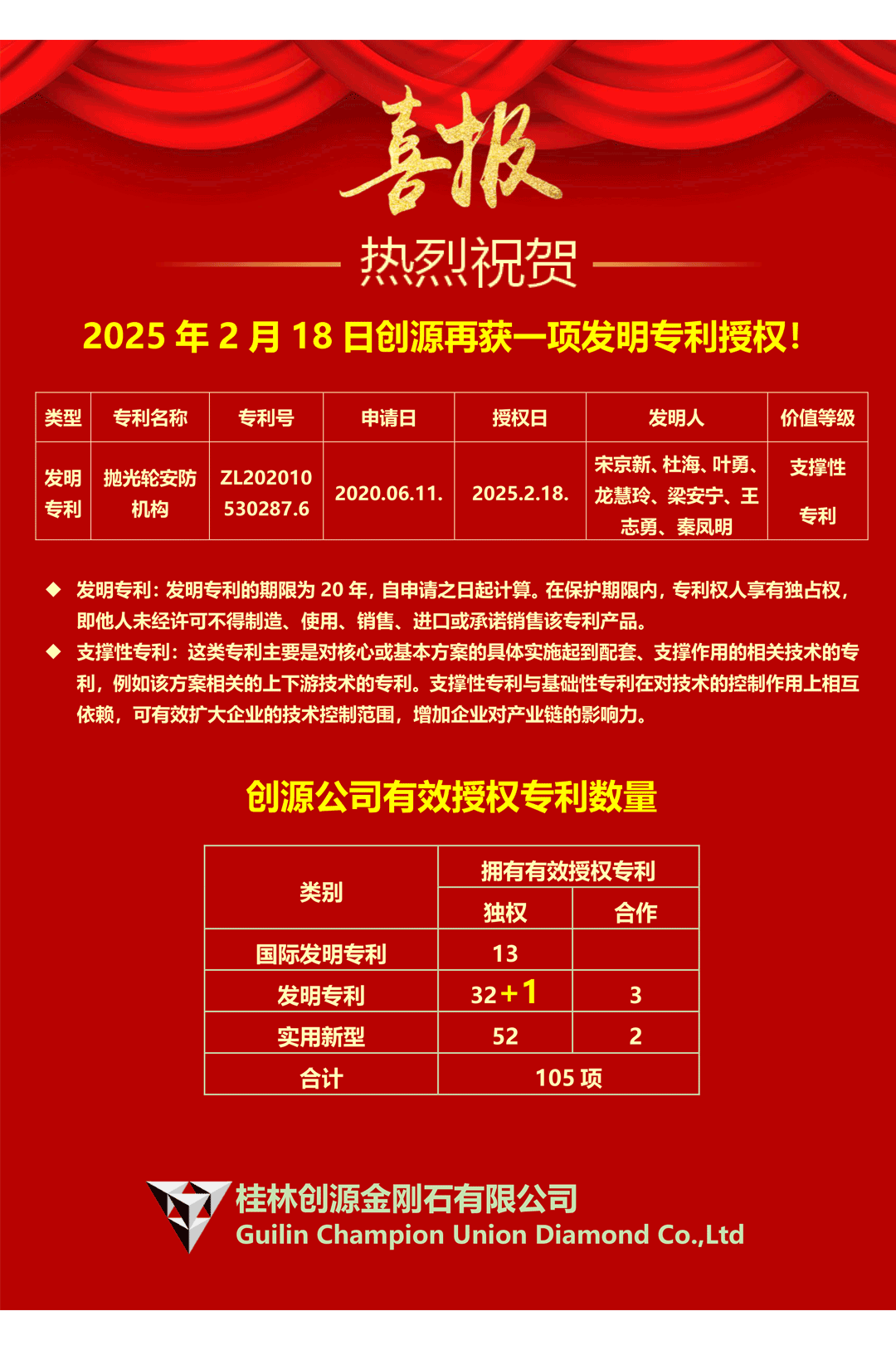 025年2月14日创源再获一项发明专利授权!