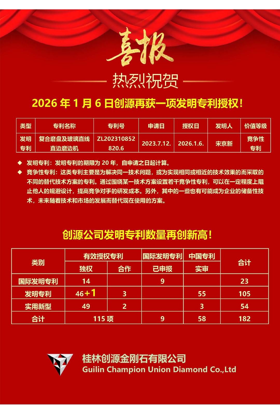 2026年1月6日创源再获一项发明专利授权!