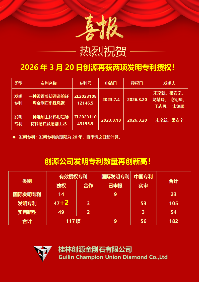2026年3月20日创源再获两项发明专利授权!